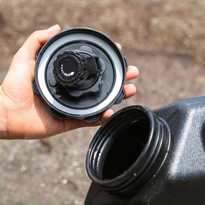 Habe diesen Kanister für Roadtrips gekauft. Er steht im Kofferraum, kippt nie um, und die Griffe machen es mir leicht, ihn ins Auto hinein- und wieder herauszuheben.