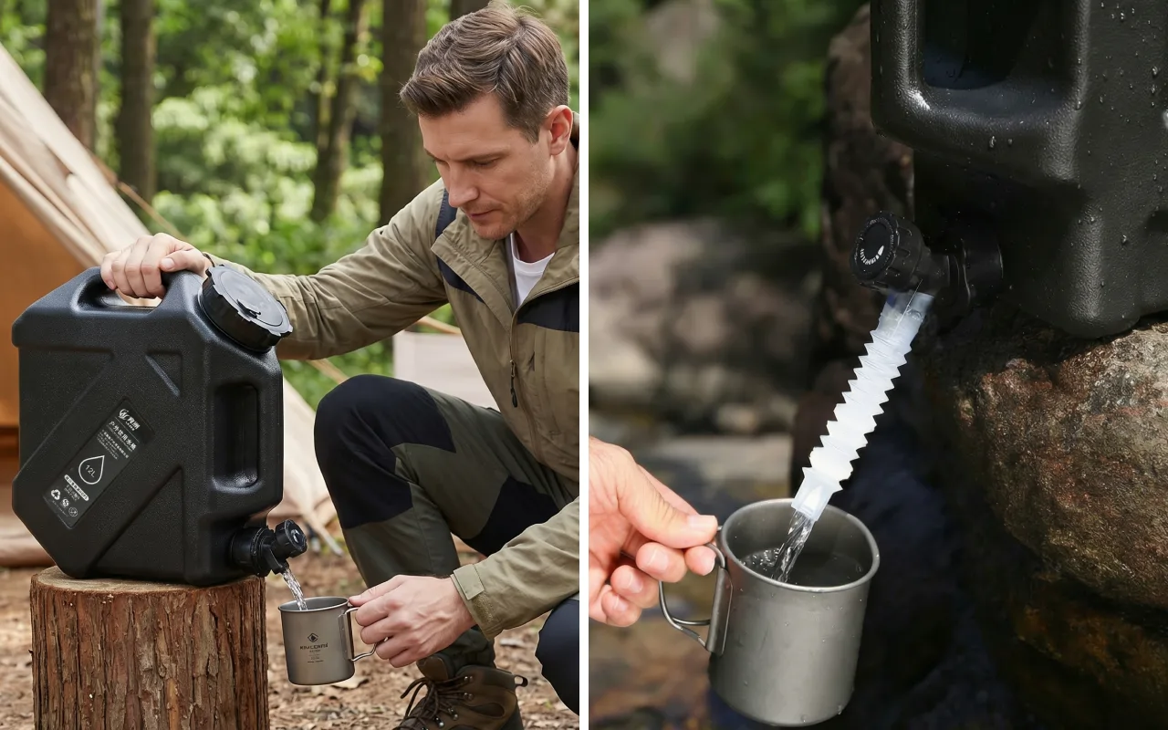 Praktische Wasserbox für Wanderungen und Roadtrips.