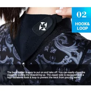 Ich bin begeistert von diesem Neoprenanzug! Er ist eng anliegend, aber flexibel, perfekt zum Schwimmen. Ich schätze seinen langen Reißverschluss und den Klettverschluss am Hals, super praktisch zum schnellen Anziehen.