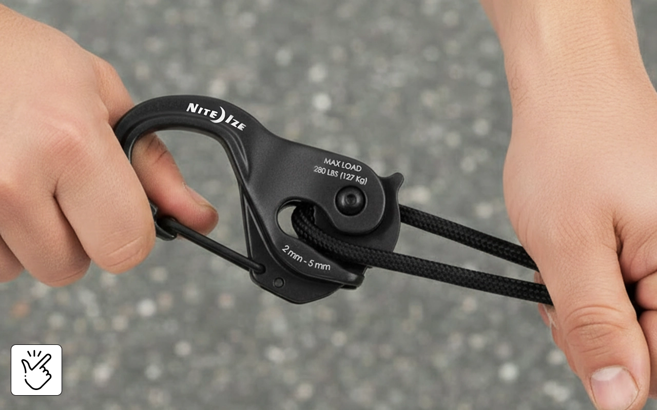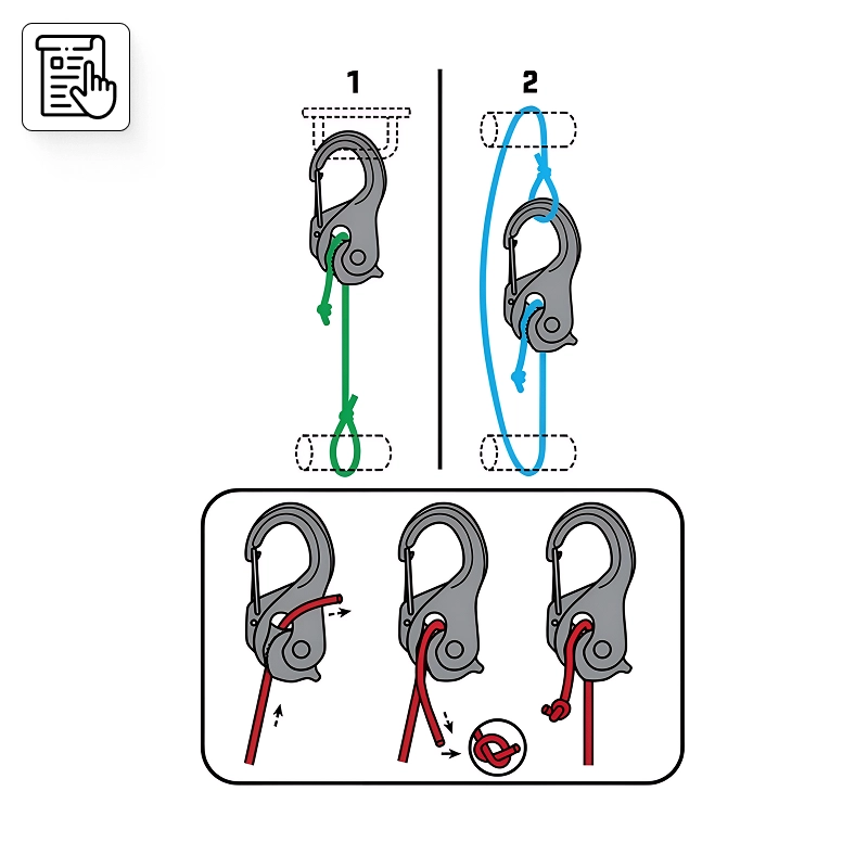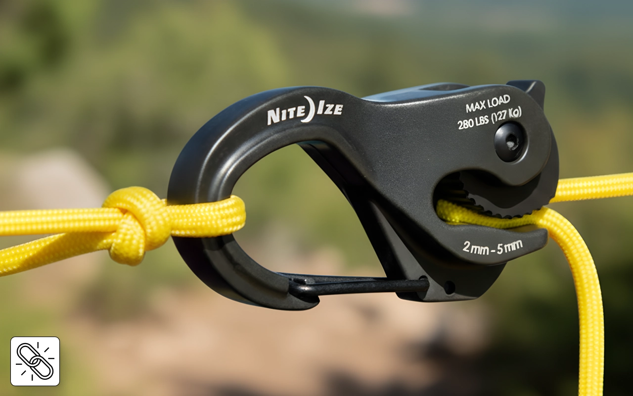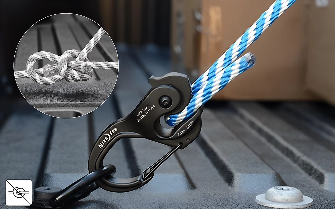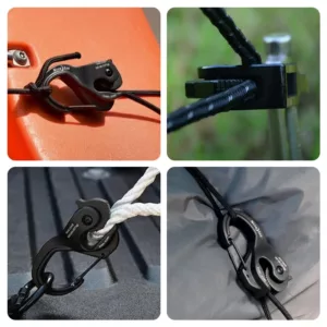Seile in Sekunden festziehen mit einem intelligenten Klemmsystem. Vergessen Sie komplizierte Knoten oder Sorgen um lose Verbindungen im Freien.
