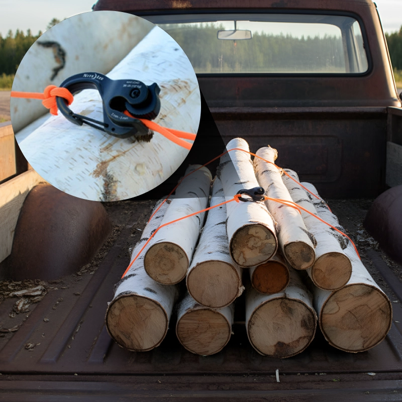 Dieses Seilschloss macht das Sammeln von Feuerholz viel einfacher. Es hält alles fest zusammen und lässt sich genauso schnell wieder lösen, wenn ich ablade.