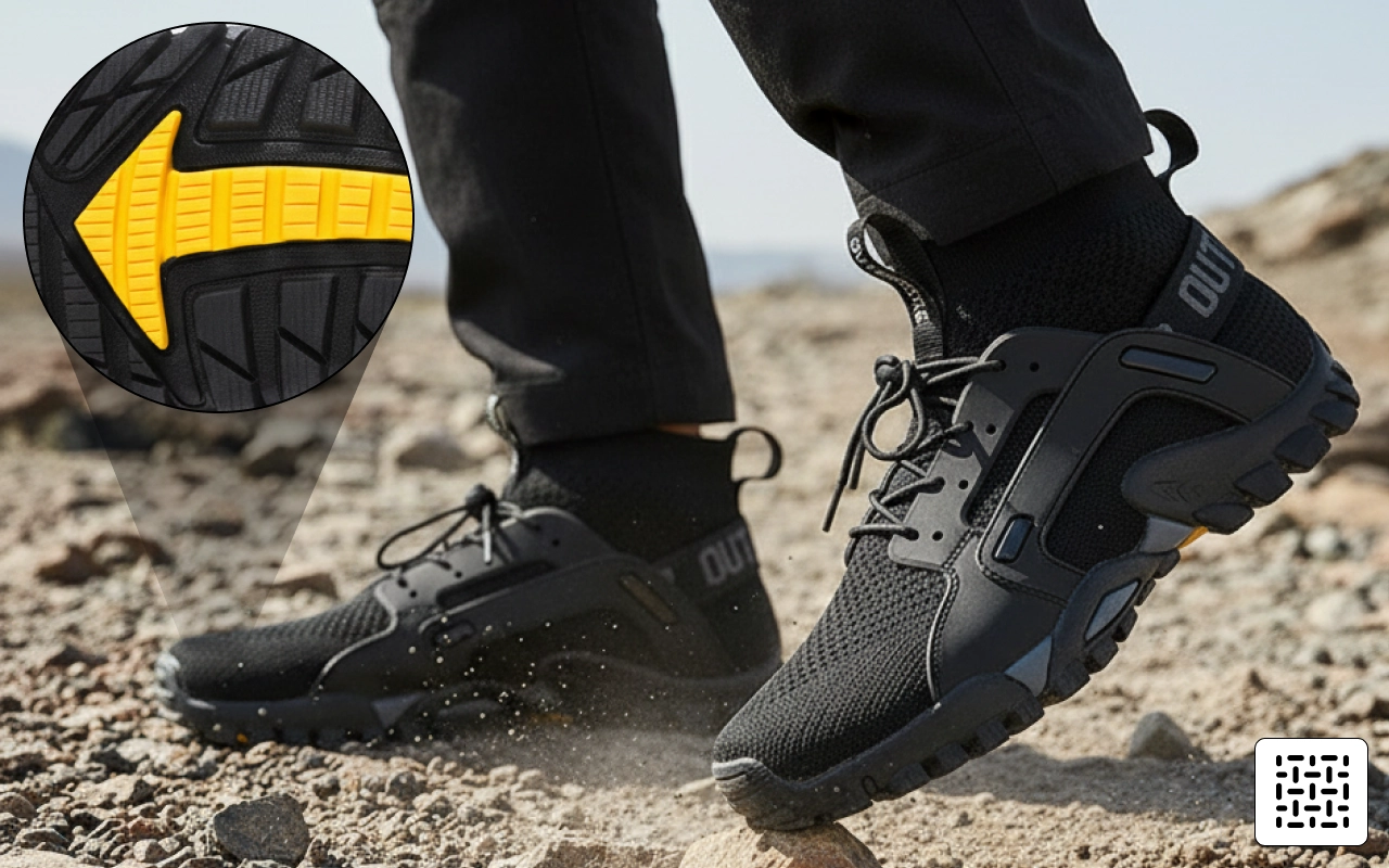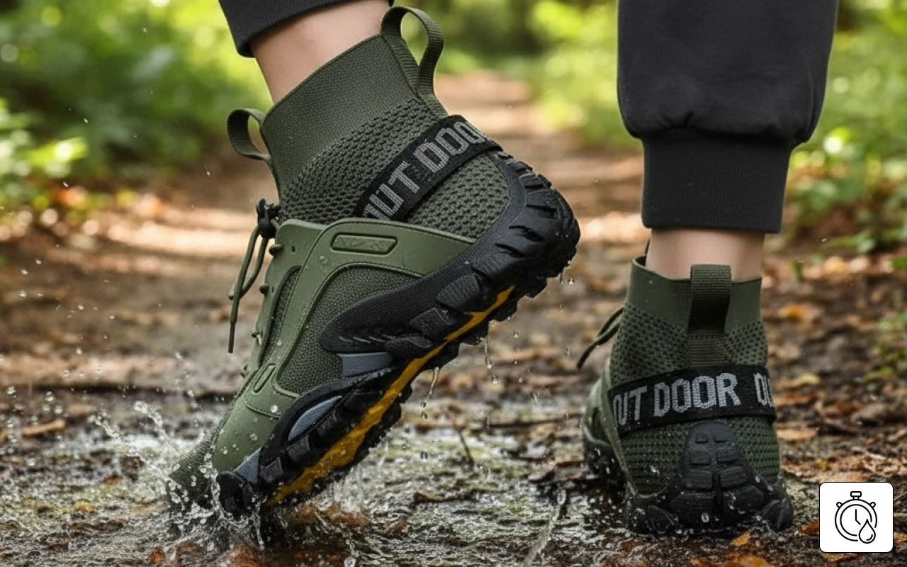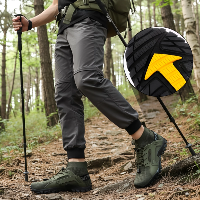 Spezielle Sohlen verhindern Ausrutschen auf schlammigen Wegen oder Steinen. Verlassen Sie sich bei jedem Schritt darauf, egal wo Sie draußen unterwegs sind.