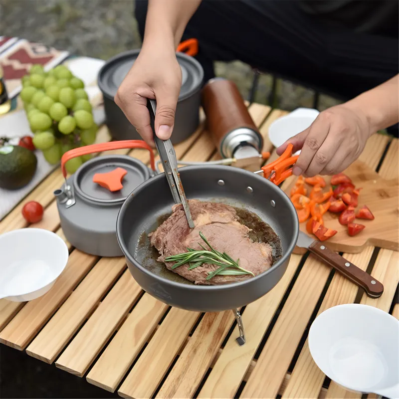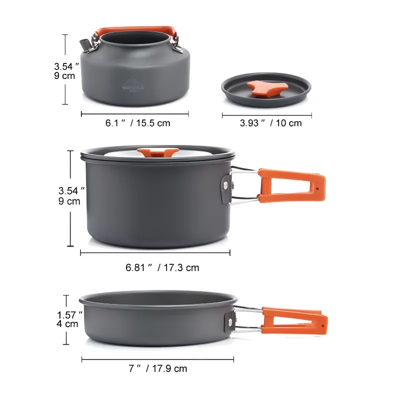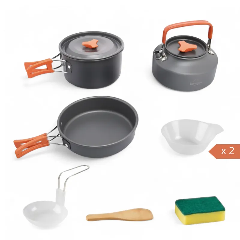 camping cooking pot set, camping tableware set, outdoor tableware set, camping pot set, camping cookware