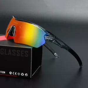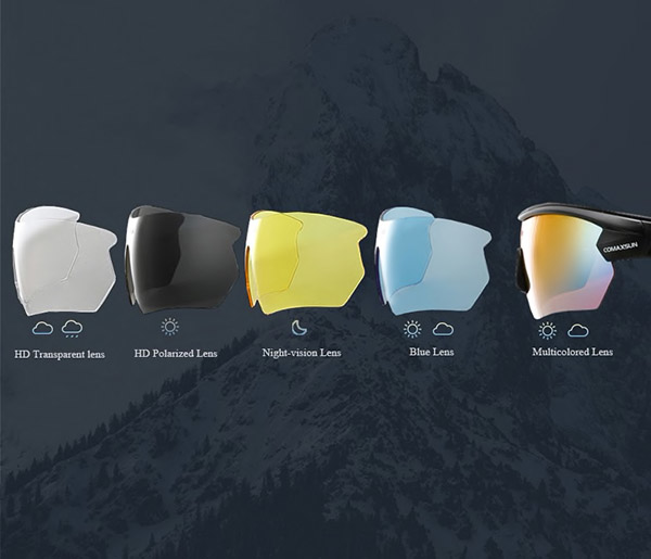 Die Brille wird mit 5 leicht austauschbaren Gläsern geliefert, um den Anforderungen jeder Situation gerecht zu werden. Wählen Sie einfach eines aus, dass Ihnen am besten passt. Egal, ob Sie im Schatten, in der prallen Sonne oder im Wald Fahrrad fahren – Sie haben eine hervorragende Sicht auf die Straße!