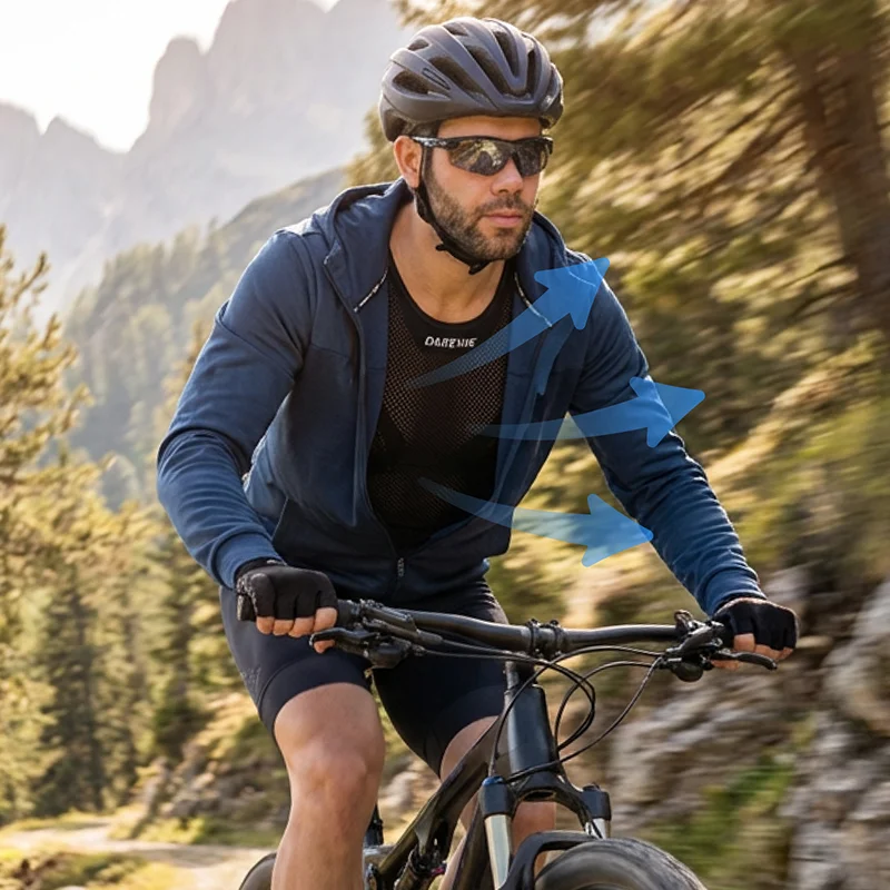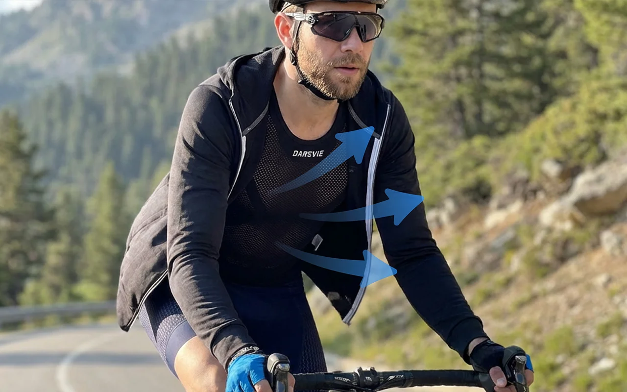 Für meinen Bruder gekauft, der jeden Tag fährt. Er sagt, der ärmellose Schnitt fühlt sich frei an, der Stoff leitet Feuchtigkeit schnell ab und der Sitz bleibt an Ort und Stelle.