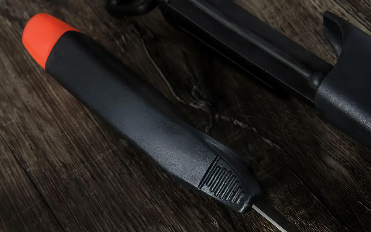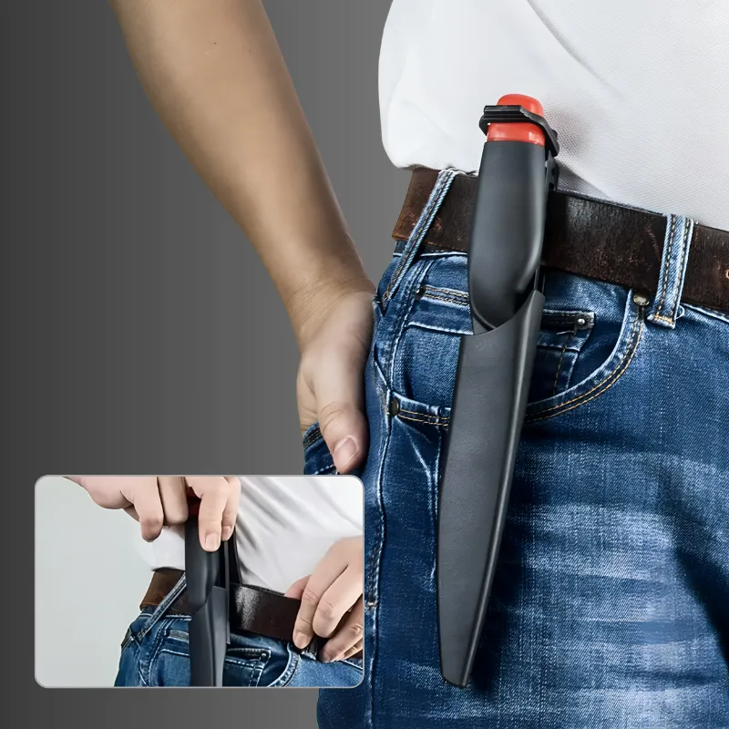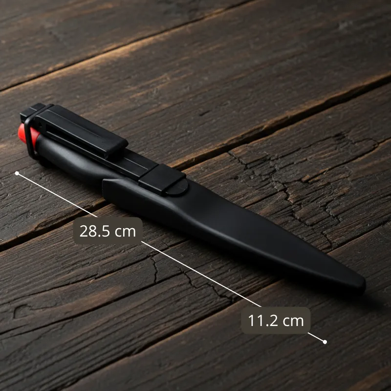 Eine robuste Abdeckung schützt die Hände vor versehentlichem Abrutschen und Verletzungen. Tragen Sie es mit einem guten Gefühl, denn die Klinge bleibt sicher verstaut.