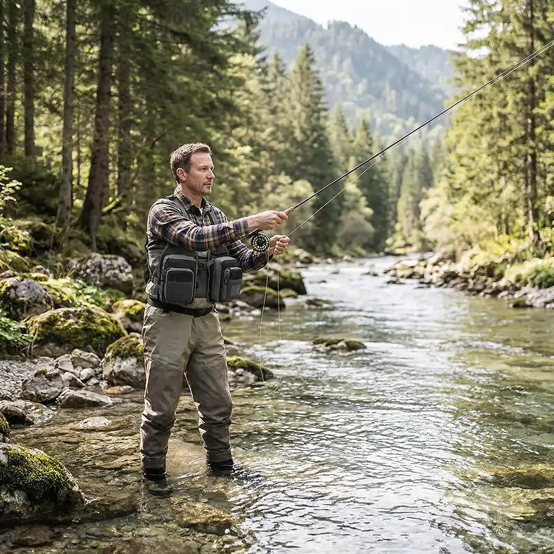 Als Anfänger im Fliegenfischen hat mir diese Weste geholfen, ruhig zu bleiben. Jede Tasche hat ihren Zweck, und ich kann Nipper oder Flotant greifen, ohne vom Wasser wegschauen zu müssen.