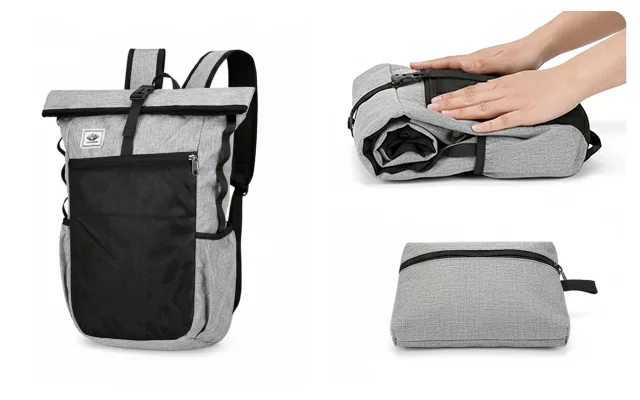 Unser Rucksack lässt sich einfach auf eine kleine Größe zusammenfalten und spart so Stauraum.