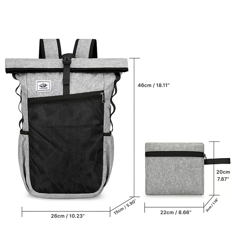 Unser Rucksack lässt sich einfach auf eine kleine Größe zusammenfalten und spart so Stauraum.