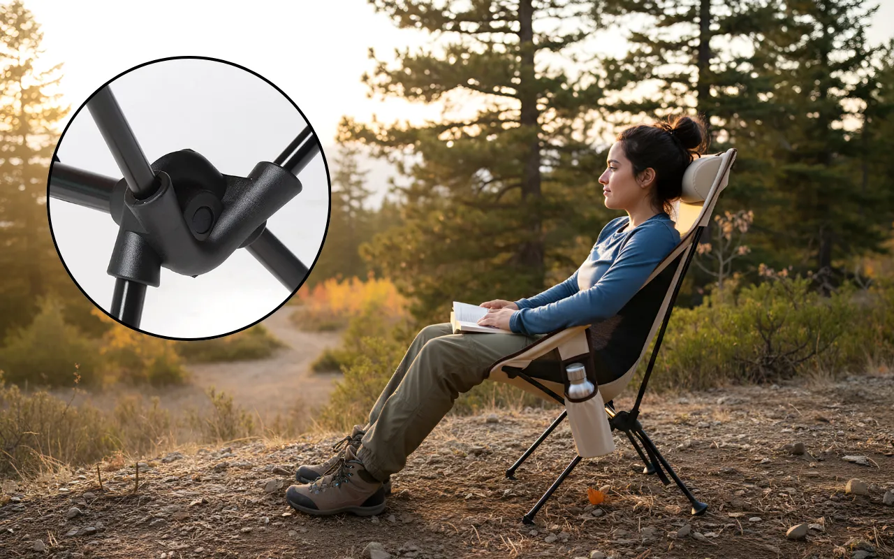 Fühlt sich jedes Mal stabil an, wenn ich mich hinsetze, selbst auf unebenem Boden. Die Mesh-Seiten verhindern, dass ich ins Schwitzen komme.
