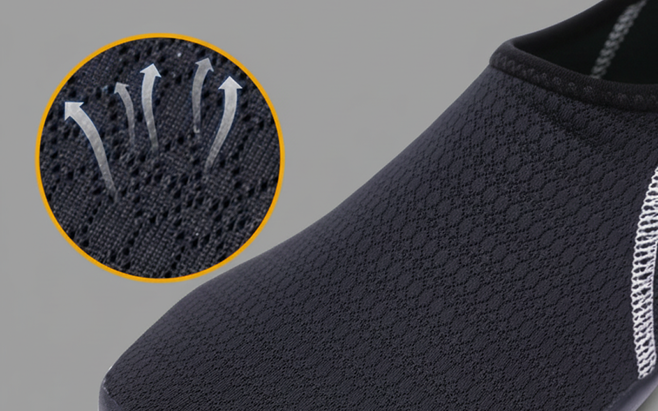 Spezial-Mesh lässt Wasser schnell entweichen und verhindert schwere Schuhe. So genießen Sie viel schneller trockene, frische Schritte nach jedem Spritzer.