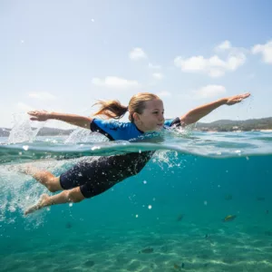 Kurze Ärmel und elastisches Material unterstützen stets freie, geschmeidige Bewegungen. Kinder können tauchen, schwimmen oder spielen, ohne sich eingeschränkt oder beengt zu fühlen.