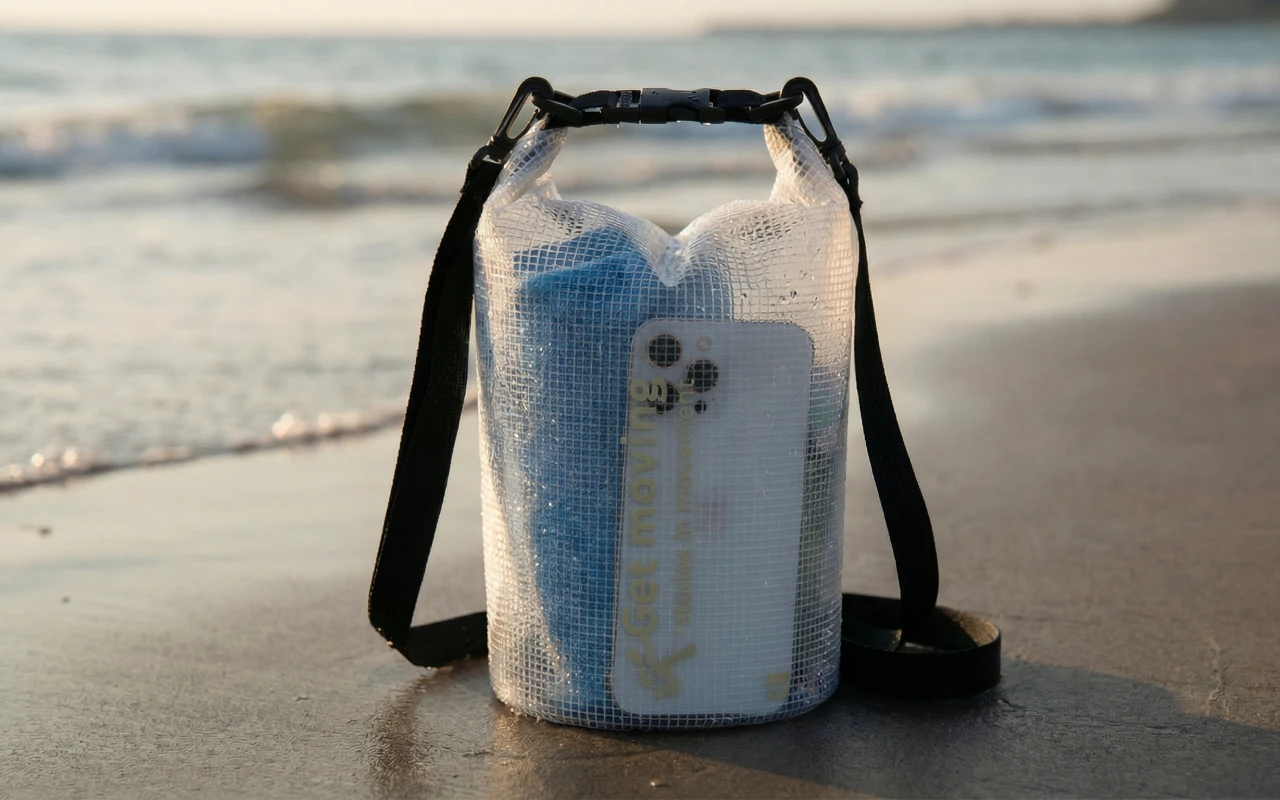 Gegenstände bleiben dank des wasserdichten Mesh-Gewebes trocken. Kein Spritzwasser oder Sand kann eindringen, sodass Ihre Habseligkeiten sicher bleiben.
