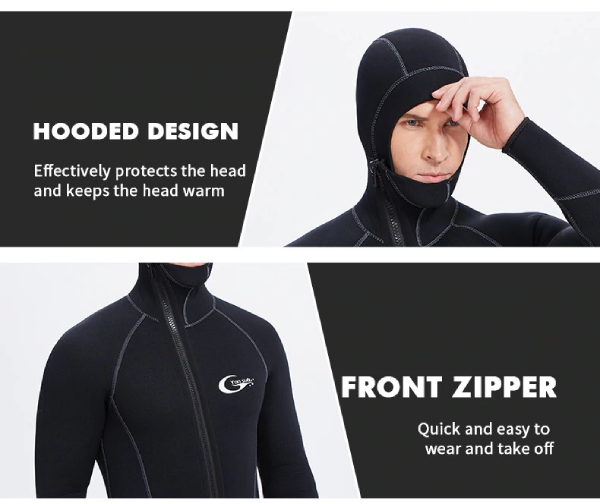 Der THREO Neoprenanzug ist flexibel und dehnbar, so dass er auch über einen längeren Zeitraum hinweg bequem zu tragen ist. Er schränkt die Bewegungsfreiheit nicht ein und reduziert den Windchill. Das Kapuzendesign schützt den Kopf effektiv und hält ihn warm. Dank des Frontreißverschlusses ist das An- und Ausziehen einfach zu bewerkstelligen. Dieser Neoprenanzug ist so konzipiert, dass er wie eine zweite Haut sitzt.