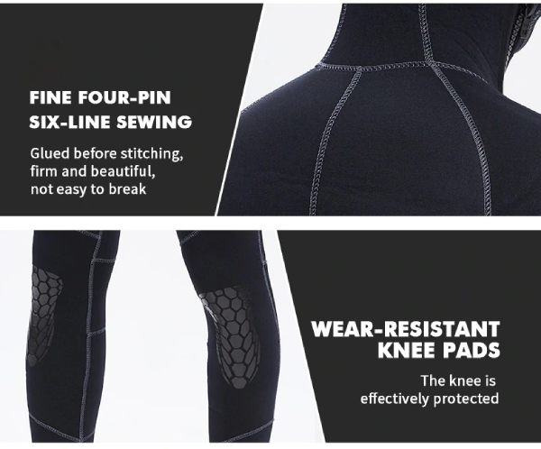 Die abriebfesten Kniepolster schützen deine Knie effektiv vor Verletzungen. Ein weiteres Merkmal dieses Neoprenanzugs ist der Schutz vor Sonnenbrand und Hautkratzern durch Meeresbewohner in der Tiefsee. Sie werden deine Haut nicht durch Wasserverschmutzung beschädigen.