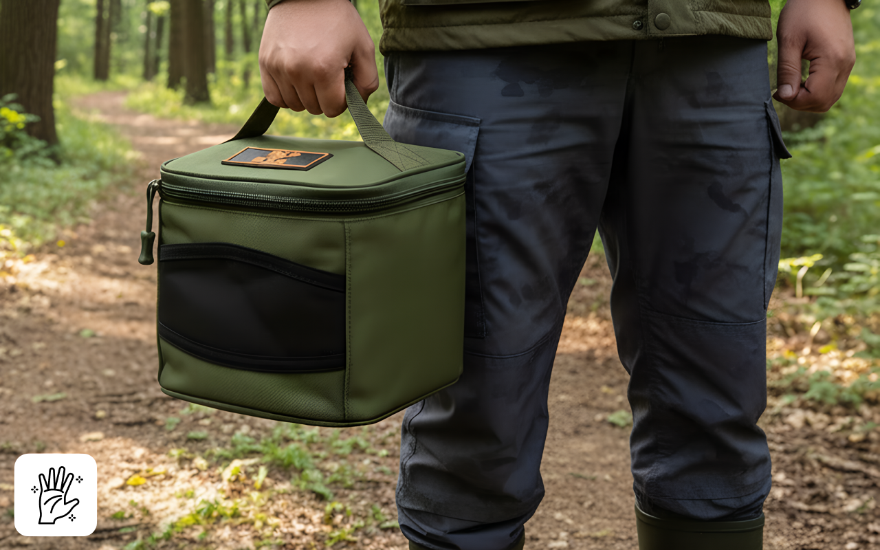 Ich liebe, wie der Griff super bequem zu tragen ist. Keine Angst mehr, meine Ausrüstung auf dem Weg zum See in dieser Saison fallen zu lassen!