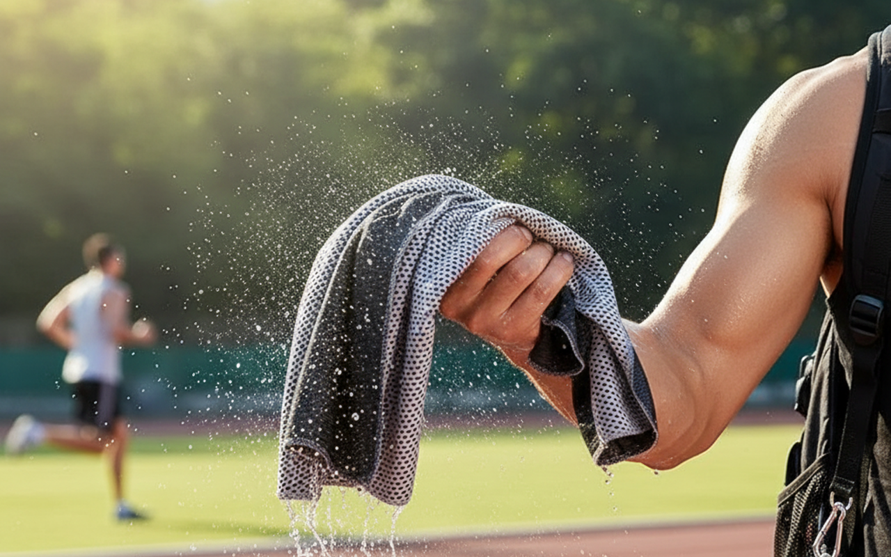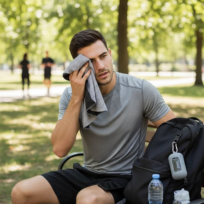 Ich habe das Handtuch für einen Lauf an meinen Gürtel geklippt und vergessen, dass es da war! Kühlt super schnell ab – perfekt für heiße Sonnenstunden.