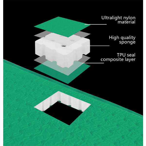 Unsere Schlafmatte ist aus hochwertigem 20D-Nylon und einem Schwamm auf der Innenseite gefertigt. Die Außenseite ist mit TPU-Kunststoff ummantelt, um zusätzlichen Schutz zu bieten und die Haltbarkeit zu erhöhen. Außerdem ist sie mit rutschfestem Silikon ausgestattet. Die Schlafmatte schützt Sie vor Kälte. Sie bietet eine gute Isolierung gegen die Bodentemperatur. Die Schlafmatte ist zwar selbstaufblasend, bläst sich aber nur so weit auf, dass sie eine hervorragende Isolierung bietet. Sie können jedoch ihre genaue Festigkeit steuern, indem Sie in das Ventil blasen.