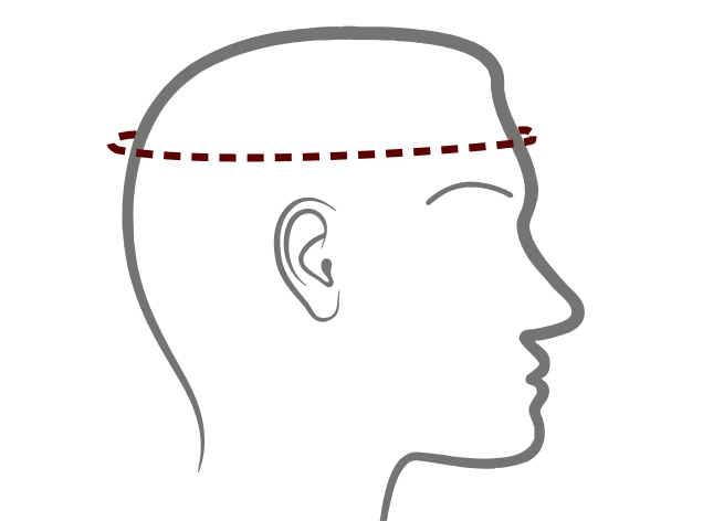 • 1. Legen Sie das Maßband um die breiteste Stelle des Kopfes, direkt über den Augenbrauen und Ohren.