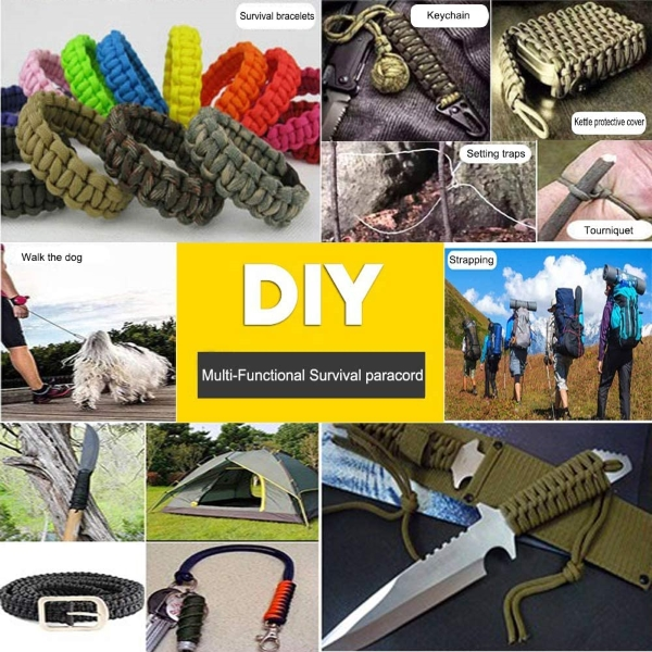 ✔️ MULTIFUNKTIONAL – Die Zeltleine hat haufenweise praktische taktische und militärische Verwendungen und wird neben der Zeltsicherung auch für Überlebenssituationen, Camping, Wandern, Angeln und sogar zur Herstellung von Armbändern und Zubehör verwendet.