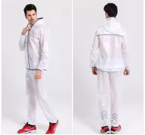 Der zweiteilige THREO-Anzug ist aus schnelltrocknendem Material (50% Polyester und 50% TPU-Nylon) gefertigt, das Sie darunter trocken und warm hält. Er ist atmungsaktiv, umwelt- und hautfreundlich. Dank der hochwertigen Mesh-Konstruktion auf der Rückseite ist sie außerdem extrem leicht und klein verpackbar. Die reflektierenden Bänder auf der Rückseite von Jacke und Hose sorgen für Sichtbarkeit und Sicherheit.
