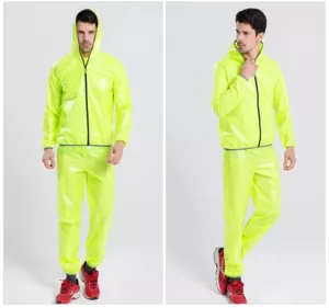 Das Set aus Jacke und Hose ist langlebig, extrem wasserdicht und reißt nicht so leicht. Die Teile sind mit vielen verstellbaren Komponenten ausgestattet, die den Regen abhalten (Bündchen, Taille, Kapuze). Der Anzug ist mit der neuesten wasserdichten Technologie ausgestattet, die dafür sorgt, dass Sie auch bei starkem Regen den ganzen Tag über trocken und geschützt bleiben. Zusammen mit den durchgehend versiegelten Reißverschlüssen gewährleistet der Regenmantel eine hohe Regen- und Winddichtigkeit. Außerdem verfügt diese Regenbekleidung über eine Schutzkapuze, die Sie auch bei einem Regenschauer nicht im Stich lässt.