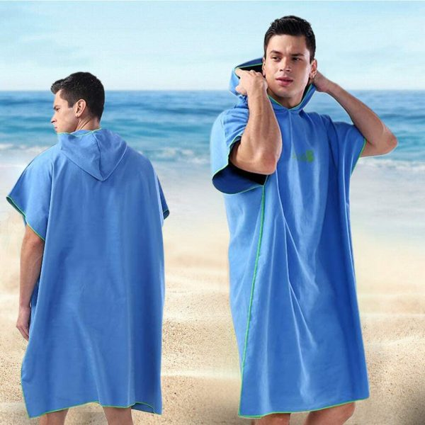 Er ist genau auf Ihre Bedürfnisse zugeschnitten, damit Sie sich bequem darunter umziehen können. Wenn Sie sich abgetrocknet haben, bietet der Poncho genug Platz, um Ihren Neoprenanzug auszuziehen und frische, trockene Kleidung anzuziehen. Außerdem hält er Sie warm und schützt Sie vor dem Auskühlen durch den Wind nach Aktivitäten im Wasser. Auch wenn Sie trocken sind, kann das Tragen des Surfponchos auf der Heimfahrt für angenehme Wärme und Komfort sorgen.