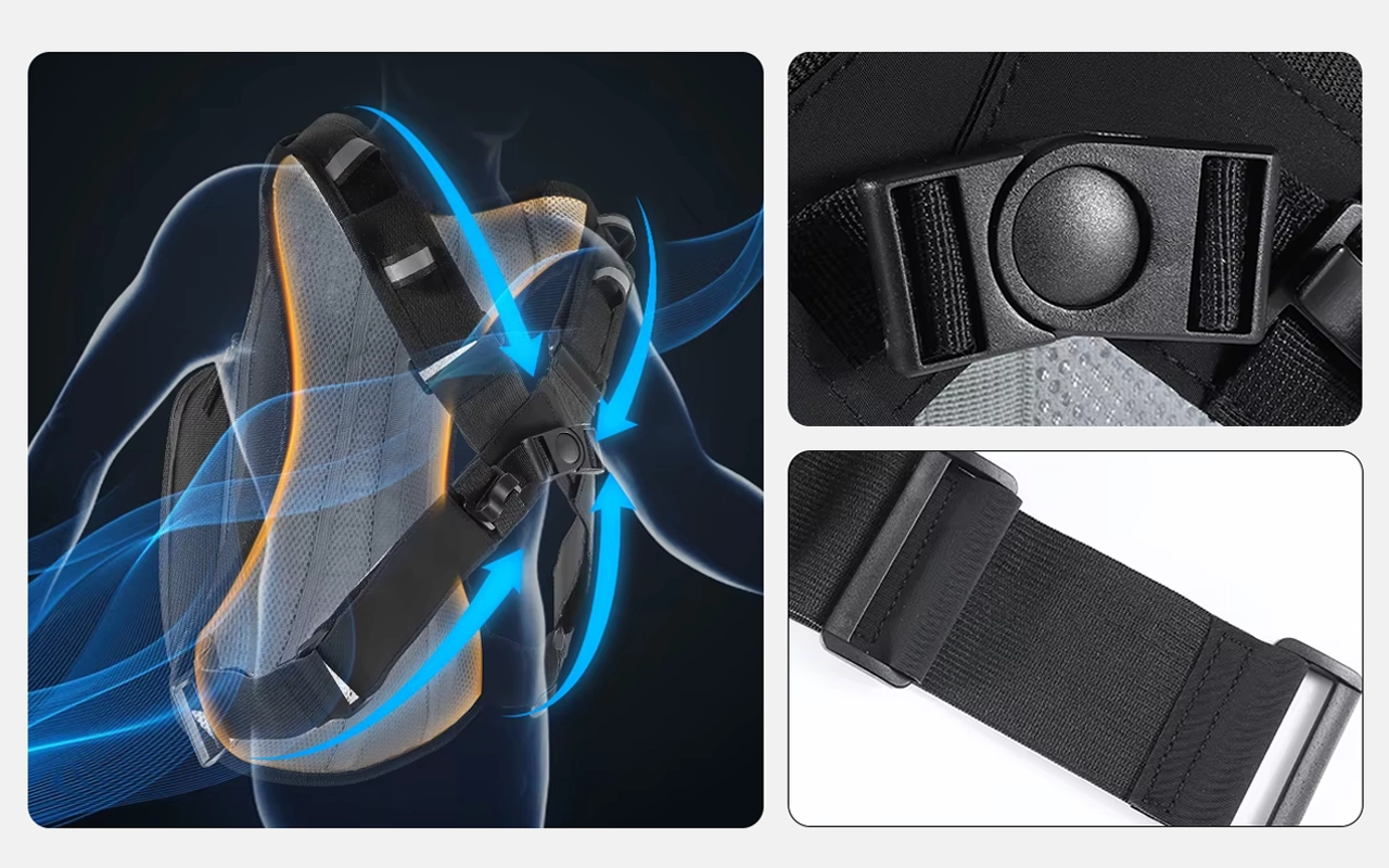 Intelligente Gurte schmiegen sich an Ihren Körper und unterstützen Ihre Haltung gut. Sie bleiben ausgewogen und stabil, selbst auf unebenen Strecken.