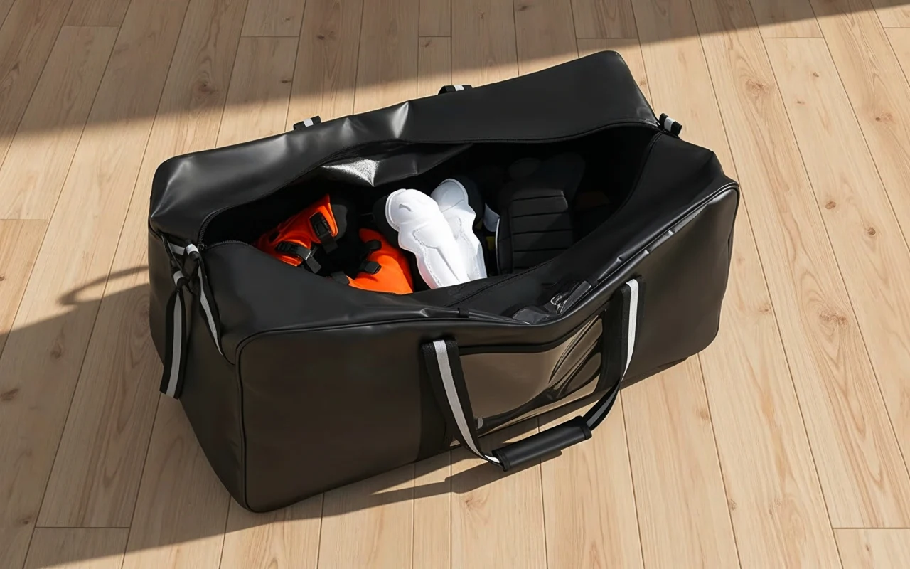 Unsere Sporttasche bietet genug Platz für Ihre gesamte Ausrüstung. Selbst sperrige Gegenstände wie Helme und Polster passen problemlos hinein. Sie müssen nicht mehr darum kämpfen, alles hineinzubekommen.