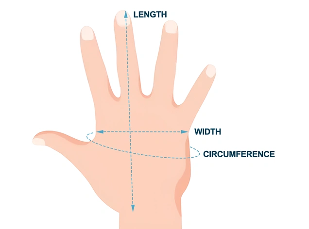 | SIZE | LENGTH | MIDDLE FINGER LENGTH | PALM WIDTH | |||