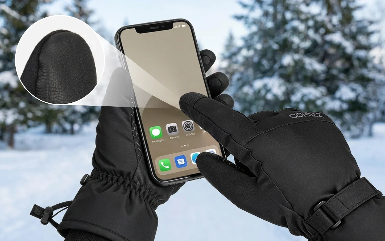 Die Handschuhe sind innen gemütlich und weich. Ich habe nicht geschwitzt und die verstellbaren Riemen hielten den Schnee am Handgelenk draußen. Der Touchscreen funktioniert auch!