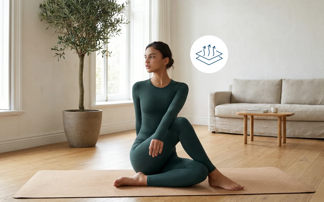 Hohe Elastizität ermöglicht jede Drehung und Wendung ohne Einschränkung. Ihre Bewegungen bleiben vom Anfang bis zum Ende geschmeidig und natürlich.