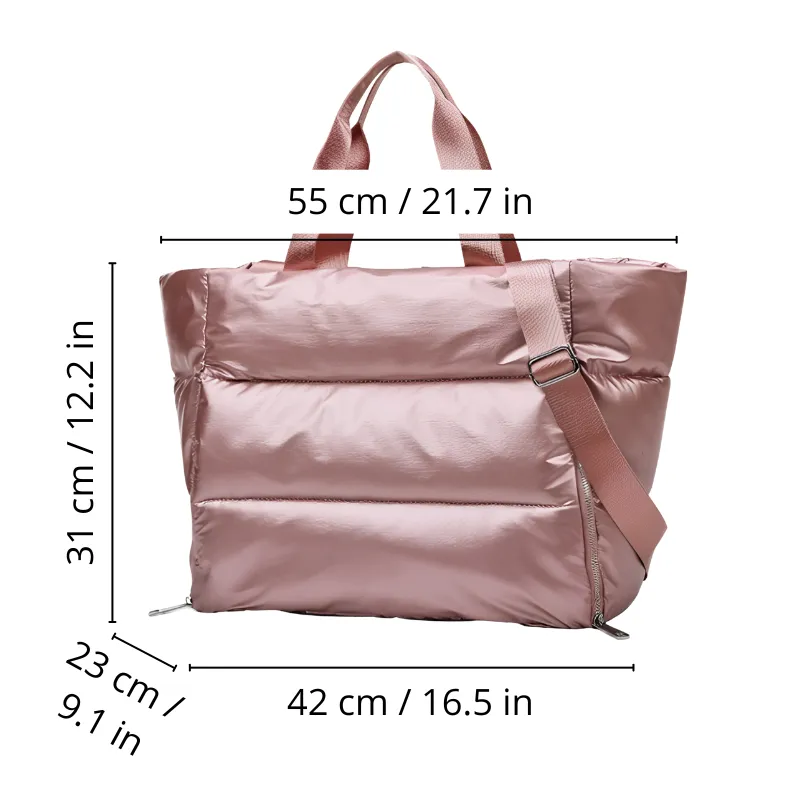 Ich liebe es, eine Tasche für Fitnessstudio, Besorgungen und Kurztrips zu haben. Schuhe passen problemlos rein und nasse Sachen sind immer getrennt.
