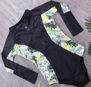 Absolut liebe diesen Badeanzug! Er bedeckt mich vollständig und die tropischen Muster sehen fantastisch aus. Außerdem trocknet er superschnell. Keine Sorge mehr wegen Sonnenbränden.