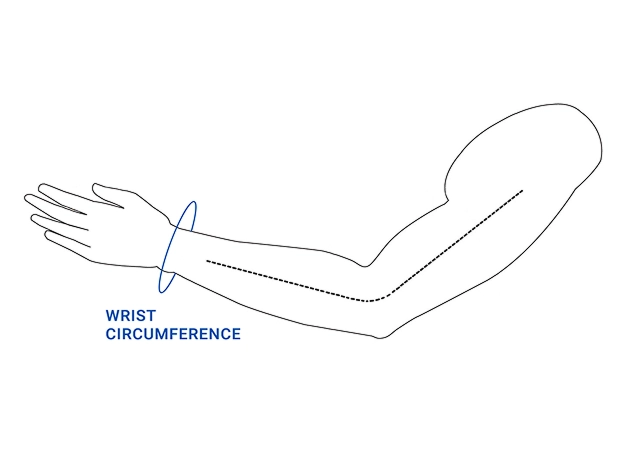 - 1. Wickeln Sie das Maßband um Ihr Handgelenk.